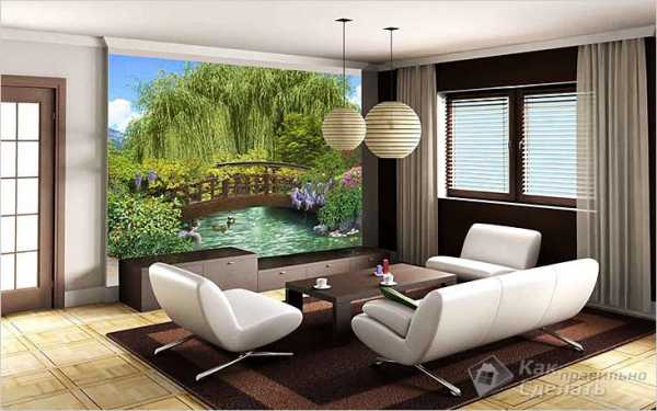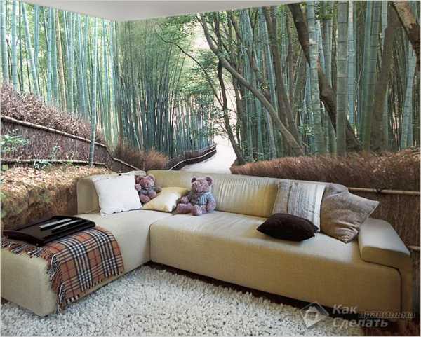 Этот материал славится своим свойством придавать комнате любую атмосферу: изображение дикого леса или прозрачного озера позволит жильцам почувствовать себя ближе к природе.