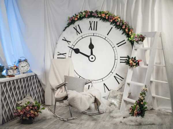 Красивым и нестареющим элементом Нового года являются большие часы с римскими цифрами, которые символизирует время и наступление нового года. Сделать их самостоятельно не составит труда, а если еще подключите к процессу ребенка, то успех гарантирован. В зависимости от габаритов часов, их можно повесить или поставить возле стула, кресла или заднего фона.