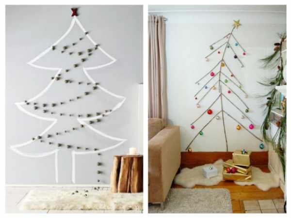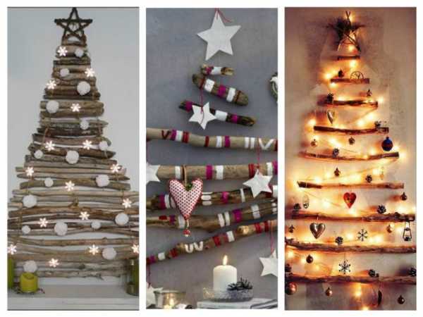 Природные материалы всегда кстати. Из деревянных палок сделай шикарную елочку. Подбери к ней игрушки и стильную гирлянду. Будет необычно и очень стильно.
