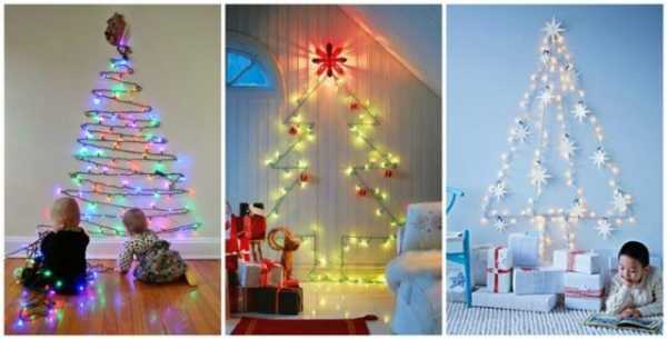 Сделать елку для фотосессии своими руками можно из гирлянды, как на фото ниже: