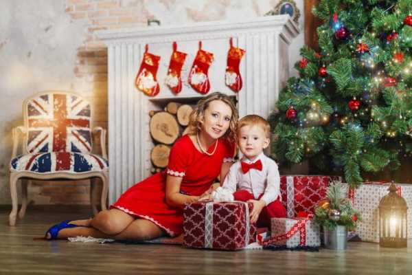 - Под елкой можно положить пустые коробки, оформленные как подарки. Их просто оборачивают яркой упаковочной бумагой и перевязывают лентой. Не стоит использовать пеструю бумагу, т.к. на фото она будет отвлекать внимание от людей.