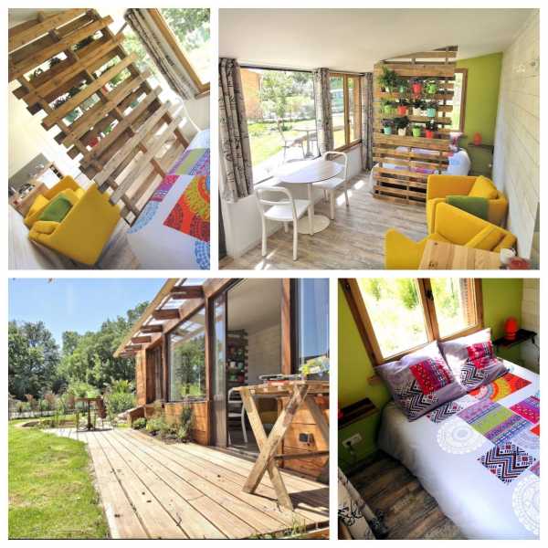 Нетипичный и очень яркий – пример хорошо показывает, что прованские виллы не всегда должны быть огромными. Этот маленький вагончик – хороший вариант для летнего дома недалеко от города. Он может вводить в заблуждение, но главный атрибут прованского стиля – большой сад – у домика все-таки имеется. Дом словно бы создан для единения с природой: в нем нет ничего лишнего, а единственные аксессуары – цветы и огромные окна.