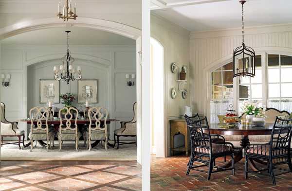 Законченности шикарному интерьеру добавляют высокие потолки, а светлое оформление заставляет пространство казаться еще больше. В столовой стоит обратить внимание на пол.