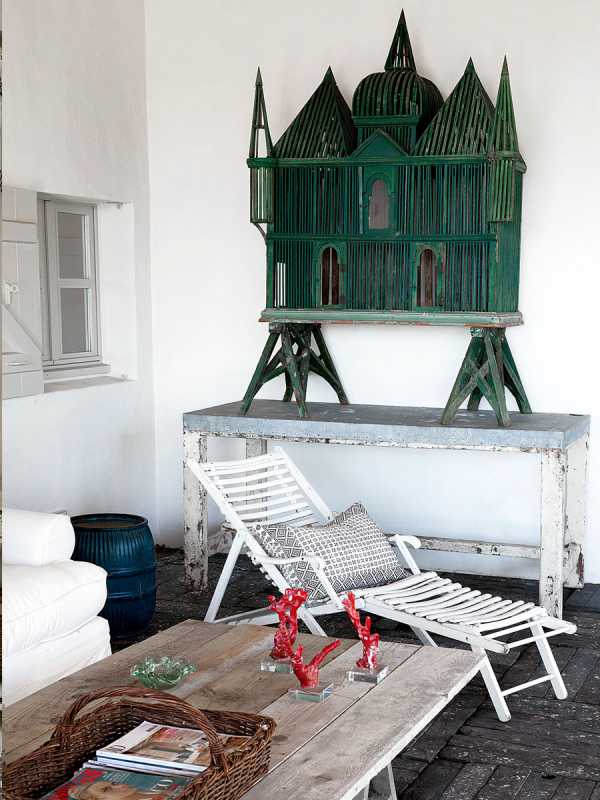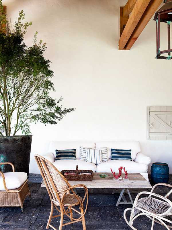 Фотографиями этой виллы можно отдохнуть от предыдущей – такая она невесомая и легкая. Плетеная, почти невесомая мебель, винтажные аксессуары, камины и старинные печки, потертые половицы и каменные полы. Строго говоря, эта вилла нежилая – она принадлежит Atelier vime – французской компании, которая создает плетеную мебель и часто служит для этой мебели фотостудией.