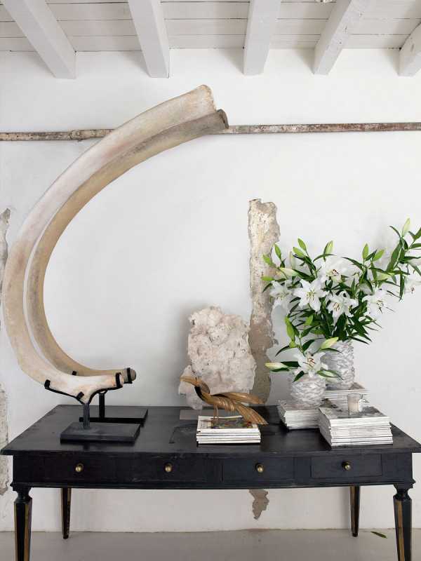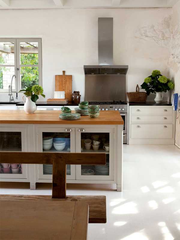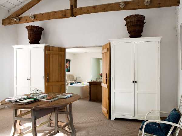 Как снаружи, так и внутри дом отделан довольно просто и естественно: белая штукатурка, деревянные полы, двери и балки, потертые стены – кажется, что все здесь осталось прежним. Большие окна обеспечивают дом естественным светом, к тому же сами ставни являются украшением фасада. Несмотря на все потертости, интерьер выглядит роскошно и изыскано. Многая мебель была восстановлена самой Изабель или куплена на блошином рынке, некоторые деревянные полки взяты из отделки самой фермы. С того дня как она купила эту ферму, занятие поиском уникальной и старинной мебели стало ее страстью. Конкретного стиля Изабель не придерживается, она просто использует те вещи, которые ей по душе.