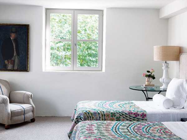 Чтобы наш список прованского разнообразия был полным, посмотрите на пример роскошного шато в Южной части Франции. Этот замок – нетипичный Прованс, полный эклектичного декора и комнат, в которых мебель буквально повторяет цвет стен, а пол является ещё одним способом выразиться. В шато много, по-настоящему много, принтов буйно сочетающихся друг с другом, а в комнате со светлыми спокойными стенами, внимание привлекает деревянный потолок.
