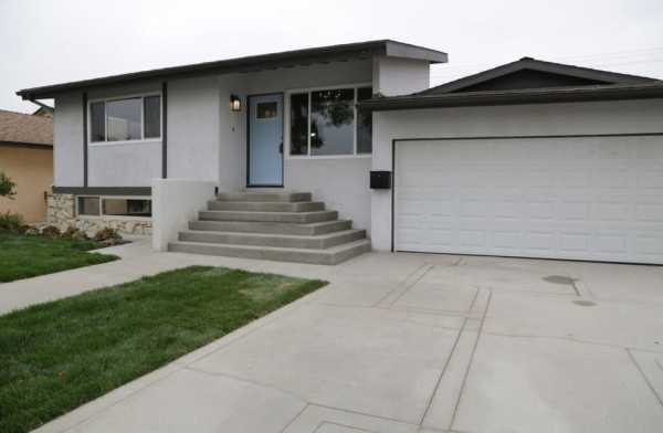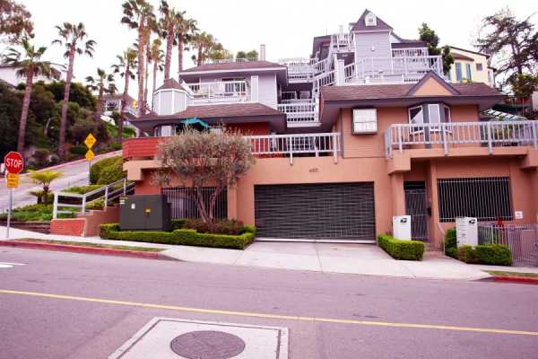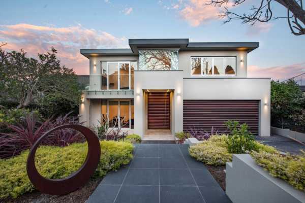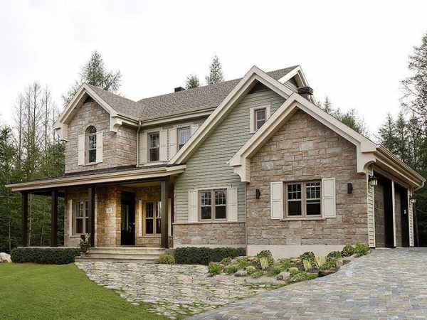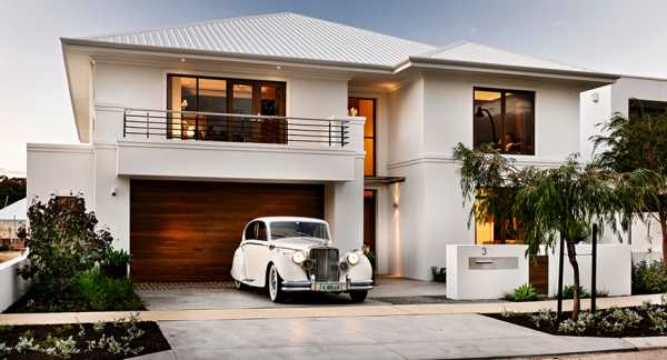 Расположение гаража, относительно жилого помещения играет важную роль в дизайне будущего дома. Все дело в том, что гаражные ворота отличаются внушительными размерами и волей-неволей доминируют в фасаде здания. Задача архитектора при разработке проекта дома с гаражом свести к минимуму это превосходство. На фото ниже дом на две семьи. Гаражные ворота явно доминируют над входом.
