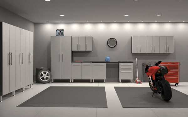 Мебель необходимо размещать по периметру гаража, чтобы было удобно ходить и работать