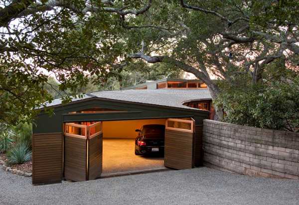 Даже если в семье единственное транспортное средство, то вторая часть гаража может быть полезной при хранении хозяйственного инвентаря, велосипедов, газонокосилки и других садовых принадлежностей. Также в свободной части гаража, может быть расположена мастерская хозяина дома в таком случае стоит предусмотреть окно, чтобы пустить больше света в помещение.