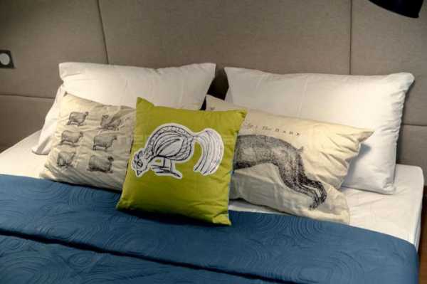 Вместо привычных тумбочек возле кровати — удобные полки, также деревянные.