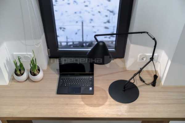 Телевизор расположился прямо напротив кровати, на консоли, образующей единое целое с рабочим столом.