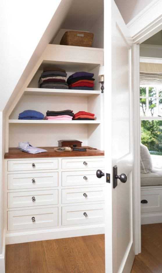 - На полках, расположенных слишком высоко или очень низко, можно хранить одежду, которую вы по каким-то причинам не носите.