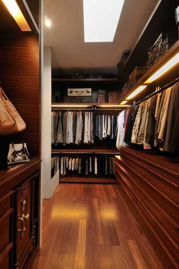 - Гардеробная комната, в отличие от шкафа, позволяет выбирать одежду одновременно, как минимум, сразу двум членам семьи.