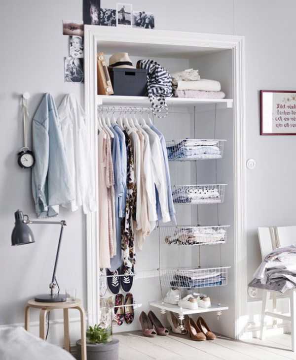В отличие от шкафа в гардеробной можно переставить полки местами или добавить новые