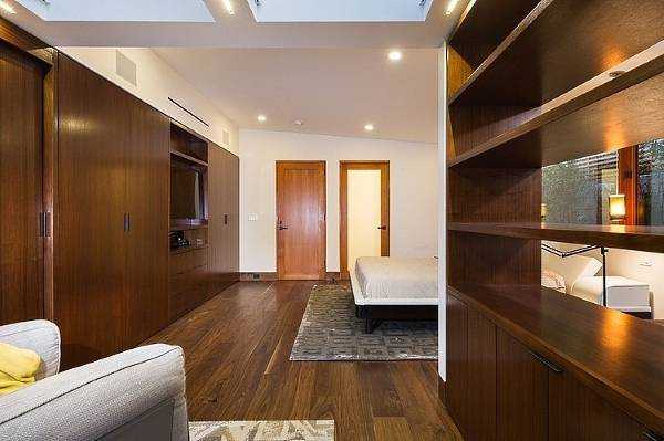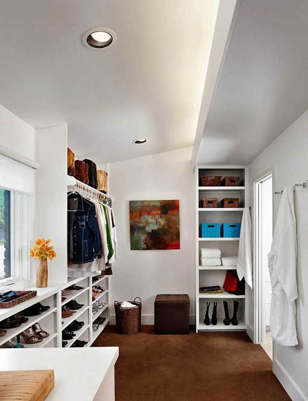 3) Можно сделать гардеробную прямо в спальне. Это имеет множество плюсов. Все-таки, именно в спальне люди раздеваются и ходят в минимуме одежды. Таким образом, гардеробная в спальне не помешает, а наоборот.