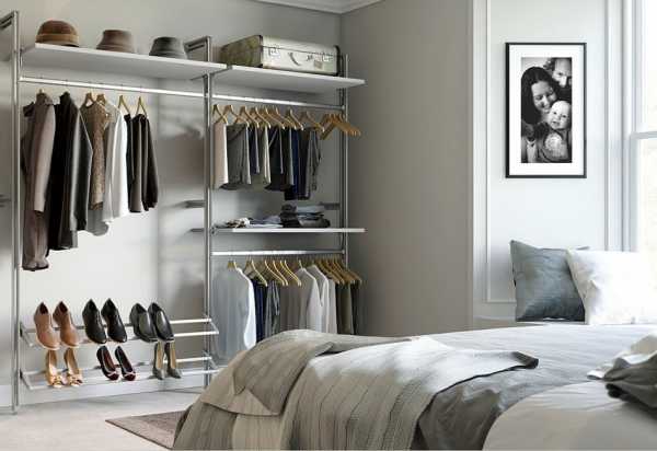 Открытый гардероб в спальне — для тех, кому нужно видеть свои «богатства»