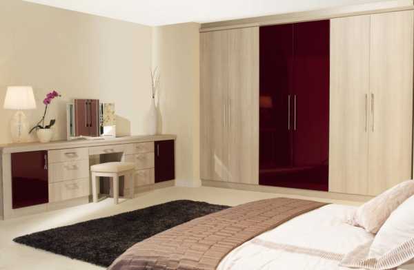 - угловой вариант — конструкция занимает один свободный угол комнаты. Наиболее часто закрывается она распашными или раздвижными дверьми. Такая конструкция прекрасно смотрится в любом помещении, причем неплохо, если она будет находиться в углу, располагающемся близко к изголовью кровати. Подходит вариант для квадратной или нестандартной комнаты;
