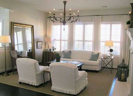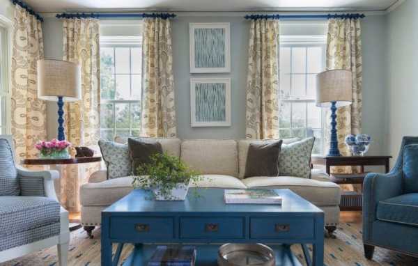 В гостиной можно сделать именно окно с гардинами центром внимания, украсив их какими-то интересными аксессуарами. Подойдут оригинальные клипсы и подхваты, пышные ламбрекены. Также можно использовать бусы или стеклярус, если это вписывается в интерьер. Не забывайте о возможности сделать гардины асимметричными: такой прием позволяет добиться удивительных визуальных эффектов.