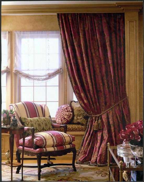 Если комната с невыразительной отделкой, то шторы лучше украсить ламбрекеном и кистями. Но если в комнате низкие потолки, то от ламбрекенов придется отказаться. небольшую комнату сделает еще более тесной сложная и пышная драпировка.