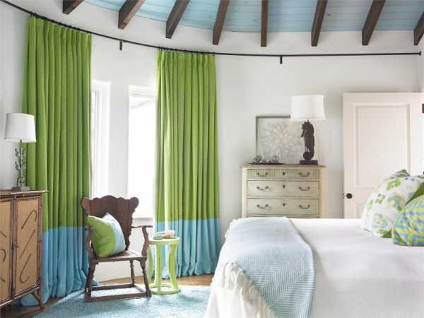 Если стены окрашены в яркий цвет, то смягчите общий вид комнаты шторами нейтральных тонов. Белые шторы подойдут к стенам в холодных и теплых цветах. Для стен в теплой цветовой гамме выбирайте шторы цвета слоновой кости, шампанского или сливочного. Серые шторы дополнят прохладные цвета на стенах. Чтобы добавить визуальный интерес, вы можете украсить шторы контрастного цвета стенам полосой ткани, которая может быть как отделка на подоле или завязкой для штор.
