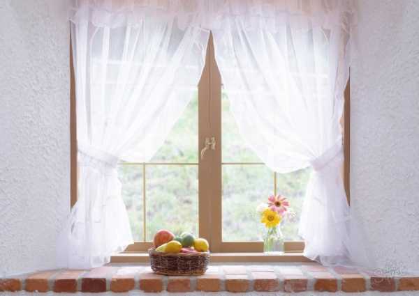 На кухню обычно выбирают шторы и гардины длиной до подоконника и из натуральных тканей. Прозрачные шторы будут пропускать много света.