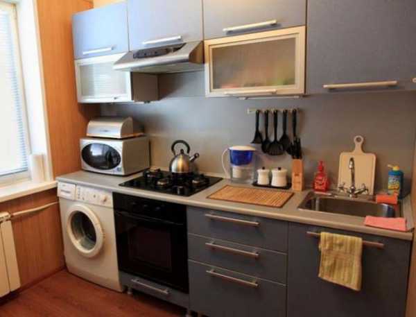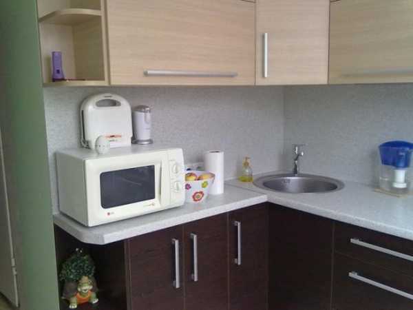 Так как речь идёт о малогабаритной кухне, нужно сделать всё возможное, чтобы задействовать в размещении приборов и кухонной утвари не только мебель, но и стены. Поэтому именно в таком случае микроволновку следует куда-нибудь повесить.