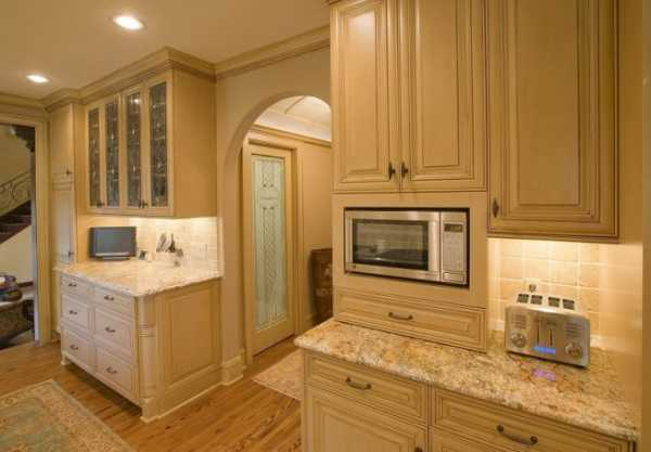 Если планировка вашей кухни предполагает наличие ниш в стене, то это может стать хорошим место для размещения микроволновки.