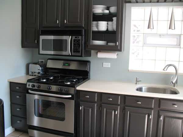 Если на кухне имеется просторный шкаф, можно подвесить микроволновку внутри него, и таким образом, она будет скрыта от глаз, а значит у вас не создастся впечатления, что кухня загромождена вещами.