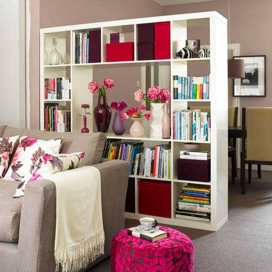 Книжные стеллажи многофункциональны, а, благодаря огромному разнообразию, можно найти тот, который впишется в любой интерьер квартиры. Минусом является та же открытость полок, где быстро скапливается пыль.
