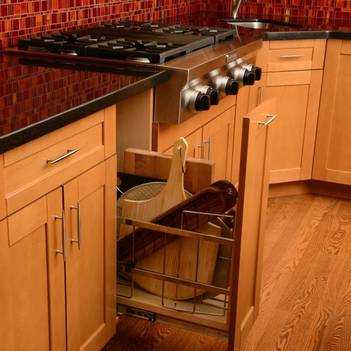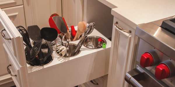 Также в таком отсеке можно хранить подставки под горячую посуду, решетки, большие разделочные доски и даже сковородки. Это действительно превосходное современное решение для любой кухни и хозяйки.