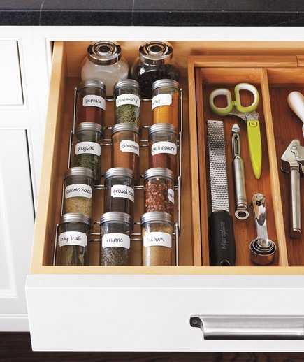 Хранить в порядке все специи, приправы, различные масла и жидкости не так легко как кажется на первый взгляд. Порой так бывает, что вы выделили ящик для этих всех вещей, но не знаете как там всё разместить.