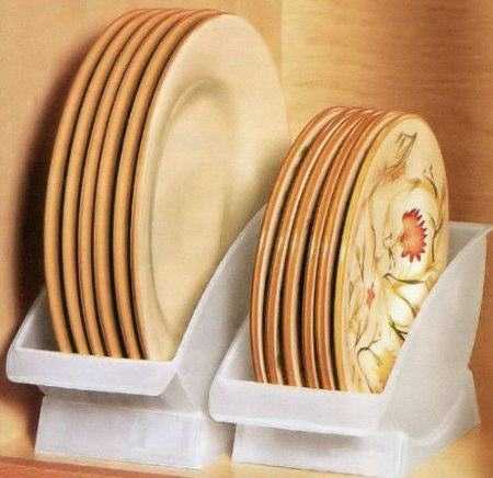 Посуда тоже лучше смотрится в одном стиле. Для хранения в шкафу с посудой тоже можно использовать дополнительные полки-подставки.