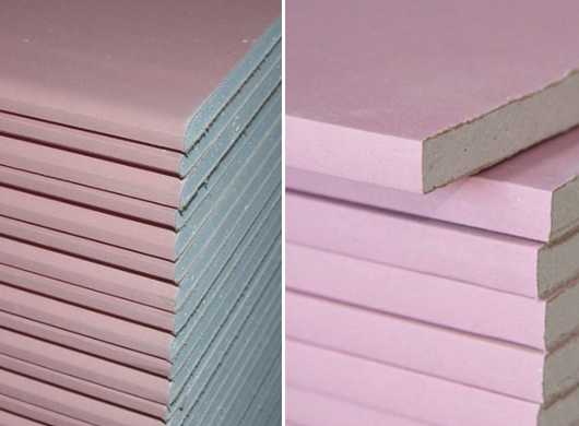 - Если к помещению предъявляются особые требования по пожарной безопасности, то в этом случае следует использовать специальные огнестойкие виды гипсокартона, такие плиты ГКЛ имеют красный цвет. Этот вид ГКЛ можно использовать около печей каминов и т.д.