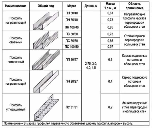 Какие есть размеры стенового профиля для гипсокартона