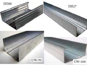 Для облицовки чаще всего применяют ПП 60 х 27 (профиль потолочный). Для устройства перегородок используются перегородочные изделия с размером от 50 мм.