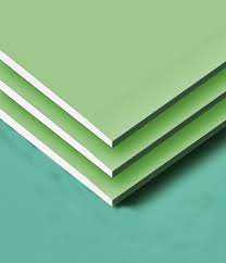 - Влагостойкий. Этот гипоскартон обладает большой толщиной, поэтому может использоваться для облицовки камнем или керамической плиткой. Из названия видно, что область его применения — в основном помещения с большой влажностью (ванные комнаты, бассейны, бани). ГКЛ не разбухает от влаги из-за начичия специального пленочного слоя, не пропускающего влагу внутрь. Конечно, все в пределах разумного. Если поместить его в воду полностью, то защитный слой уже не спасет.