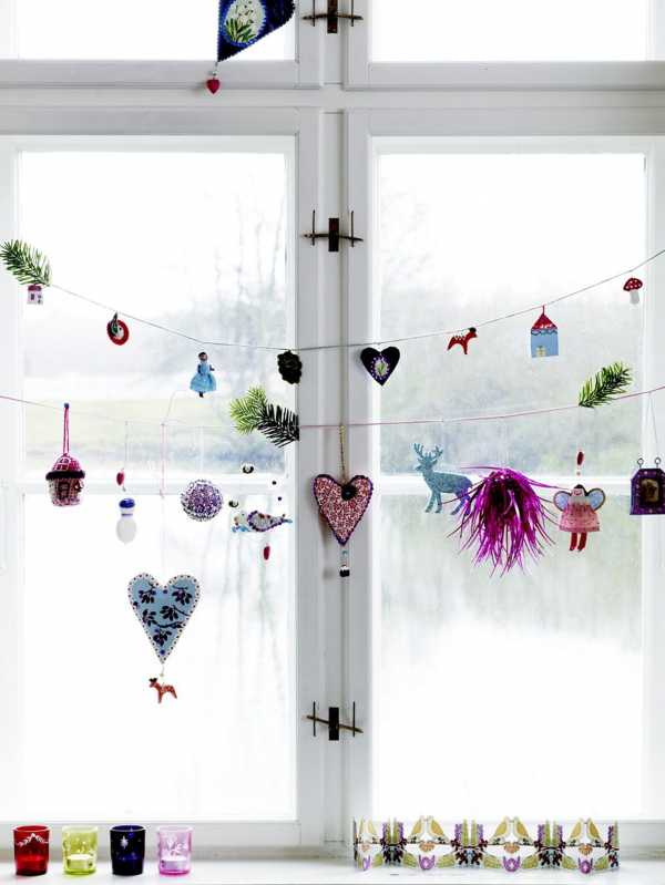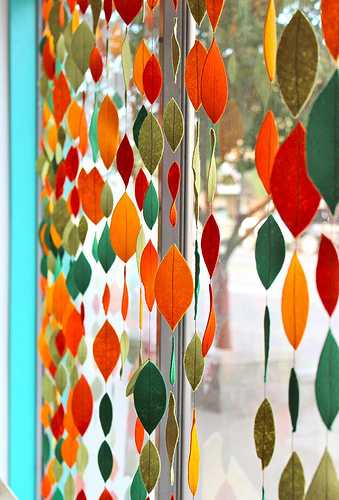- Бумажные гирлянды на окнах вполне могут стать достойной заменой традиционным шторам, особенно если они будут идеально подобраны под стиль интерьера. Такой декор для окон создает радостную атмосферу в квартире.