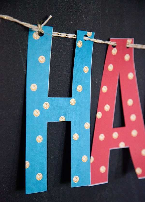 В этом мастер классе тоже будут шаблоны, но вырезать буквы уже не нужно. Такая гирлянда смотрится очень аккуратно и красиво, и наверняка сможет порадовать именинника.