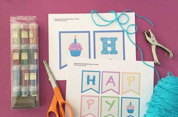 Чтобы сделать гирлянду к Дню Рождению не достаточно распечатать трафареты, нужно еще их как-то скрепить и повесить. Давайте рассмотрим варианты того, как это можно сделать.