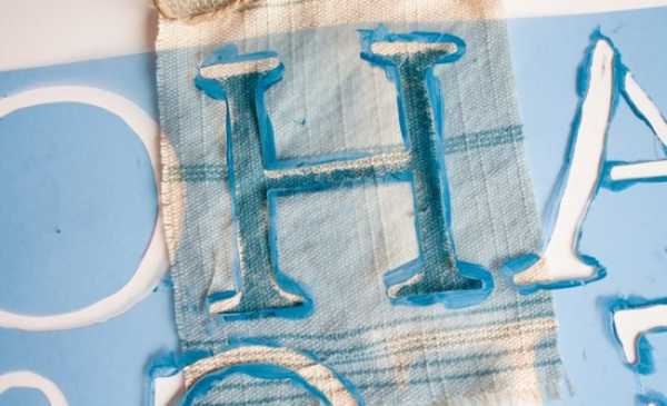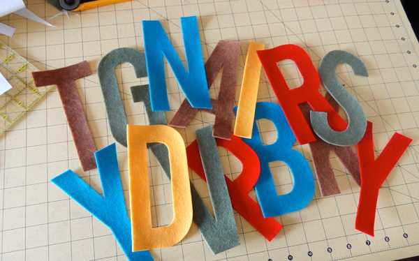 - Выберите трафарет букв понравившегося стиля и распечатайте. Потом уложите каждую букву на отдельный кусочек ткани и обведите.