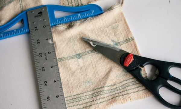 - Порежьте ткань на ровные прямоугольники. В данном случае это 17х12 см.