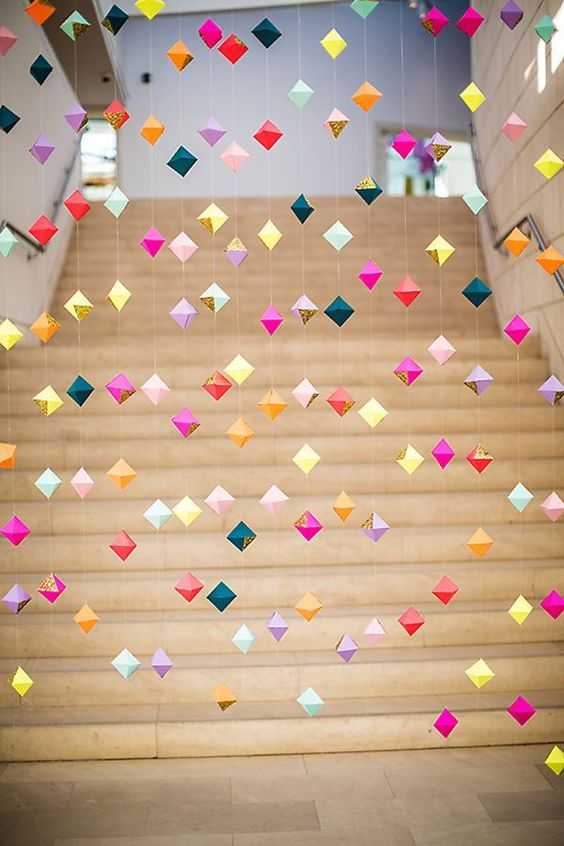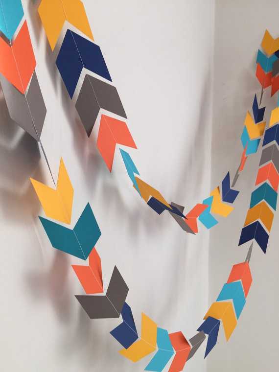 Совет! Бумажная гирлянда может стать приемом акцентирования внимания, методом зонирования помещения или просто декоративным элементом.