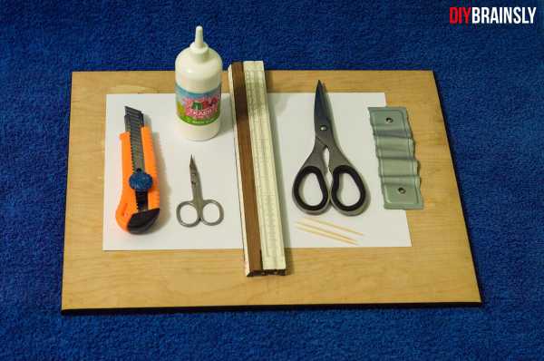 Вырезать детали развёртки нужно очень аккуратно, иначе косяки будут сильно бросаться в глаза. Вырезать можно канцелярским ножом, положив макет на доску или фанеру, прикладывая линейку к линии обрезки, либо обычными ножницами.