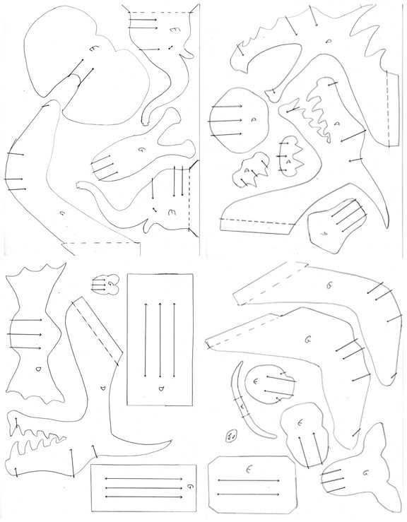 Схема деталей для сборки слона и дракона