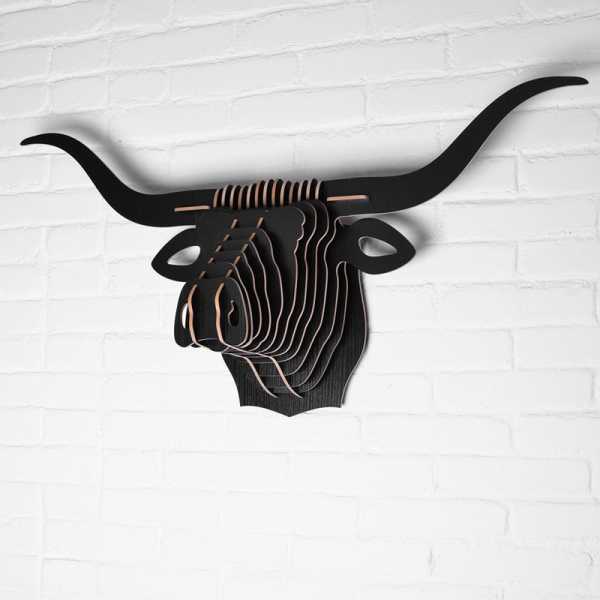 Такая голова быка из фанеры собирается по тому же принципу, как и другие поделки