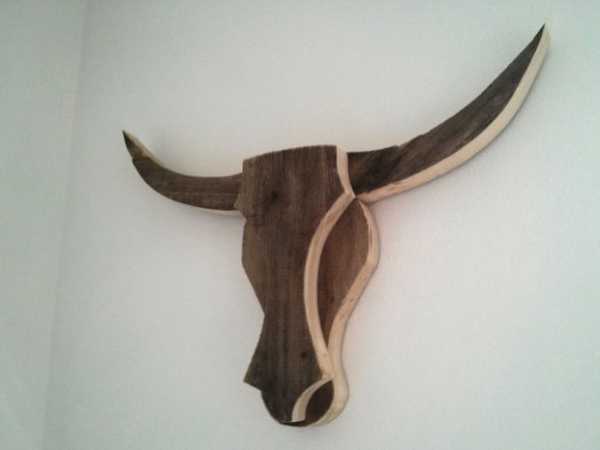 Я решил изготовить свою голову быка из дерева, я нашел его в контейнере для отходов на строительной площадке (мне действительно нравится этот поношенный вид, который приобрело старое дерево, подвергаясь влиянию солнца и дождя).