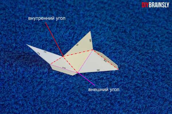- Теперь нужно согнуть боковые углы и верхний треугольник к центру. Разогните.