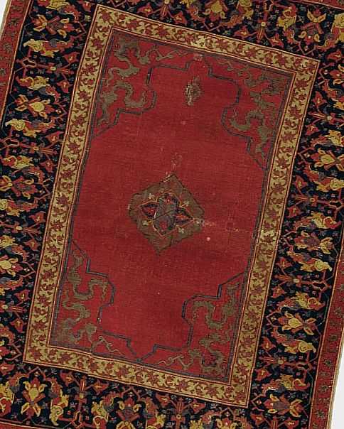 Играя богатством темных красок, изделие 16-го века происходило из Анатолии и находится в превосходном состоянии, несмотря на возраст. Ковер обладает размерами 1,25 м/1,16 м и был продан на аукционе в Кристи намного дороже стартовой цены в $40 000 — $60 000. С классическим медальоном в центре маленький ковер, по всей вероятности, был использован во время молебни для мусульман.