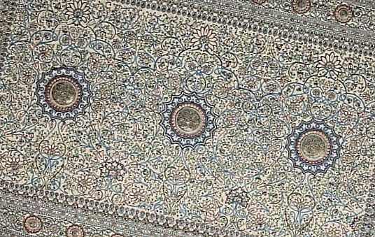 Никто не будет спорить о роскоши драгоценных камней и жемчугов и это доказал индийский ковер, продан неизвестному покупателю в 2009 году на аукционе в Сотсби за $5,5 млн. Ковер размерами 1,7 м/2,6 м украшен миллионом зерен жемчуга Басры.