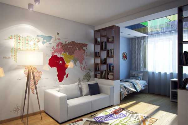 С помощью решений дизайнеров, можно поделить комнату на зоны, таким образом, сделав ее улучшенной и комфортабельной. Поставьте простую барную стойку – она станет границей между кухней и спальным место. Купите раздвижную мебель, к примеру, кровать и столик в одном лице.